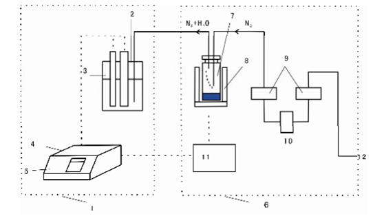 | 3——滴定池; | 8——發熱器 | 12——氮氣; |